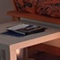 en soirée. Au nord, la grande baie vitrée du salon